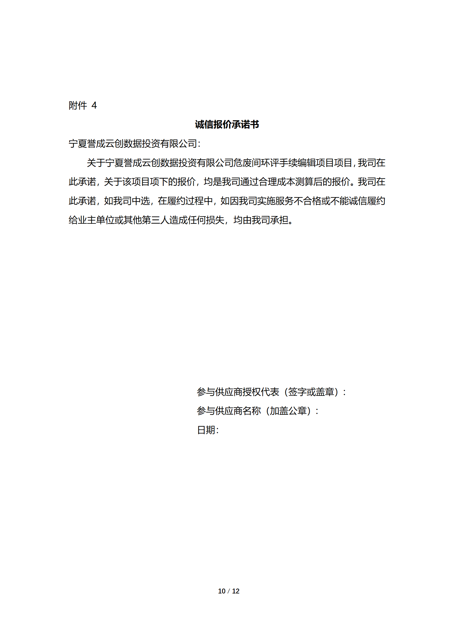 宁夏誉成云创数据投资有限公司现采购公司危废间环评手续编辑项目,详细采购信息参见附件询价文件。