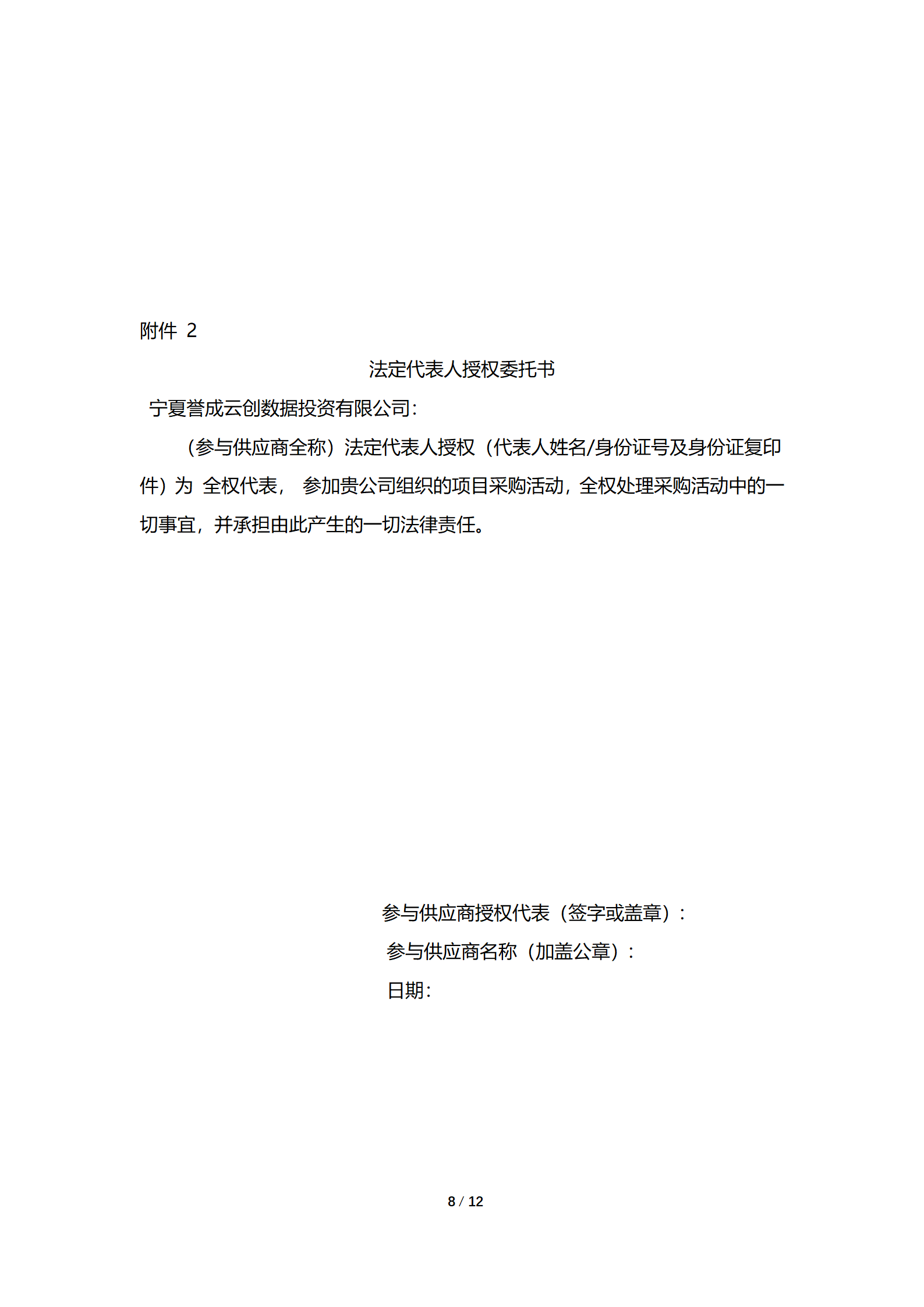 询价人:宁夏誉成云创数据投资有限公司